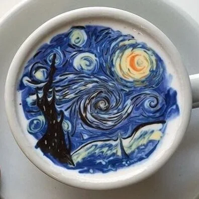 With the use of food colorings mixed with thick cream, the “Cremart” features various drawings and paintings on the foam